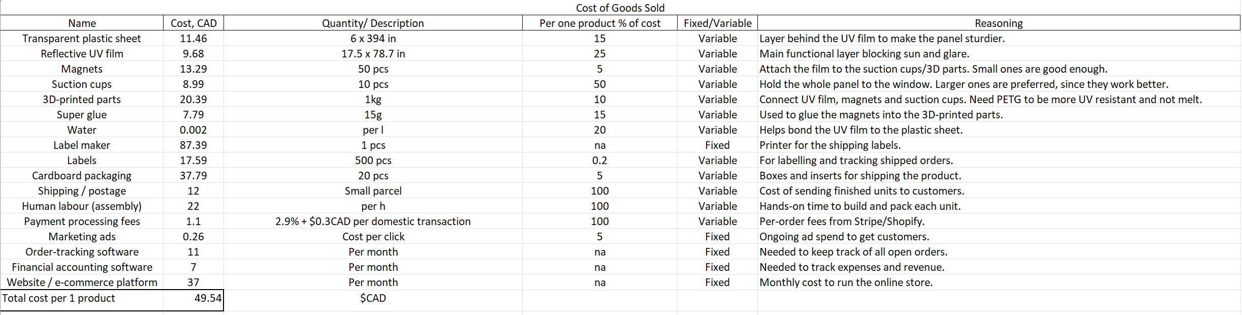 - Key resources: a small workspace, access to 3D printing, basic tools, and simple finance tracking software.